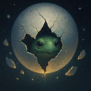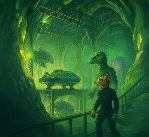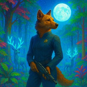 In a single stroke, the round, silvery moon had become both more and less of a god, answering Lt. Diaz’s prayers at the same time as breaking apart, revealing itself to be nothing but a hollow shell, housing a creature inside who the half-Lupinian would have never thought to howl or pray to in the first place — a baby world-turtle was a wonderful thing, but it wasn’t the kind of moon she’d been taught to revere as a pup.